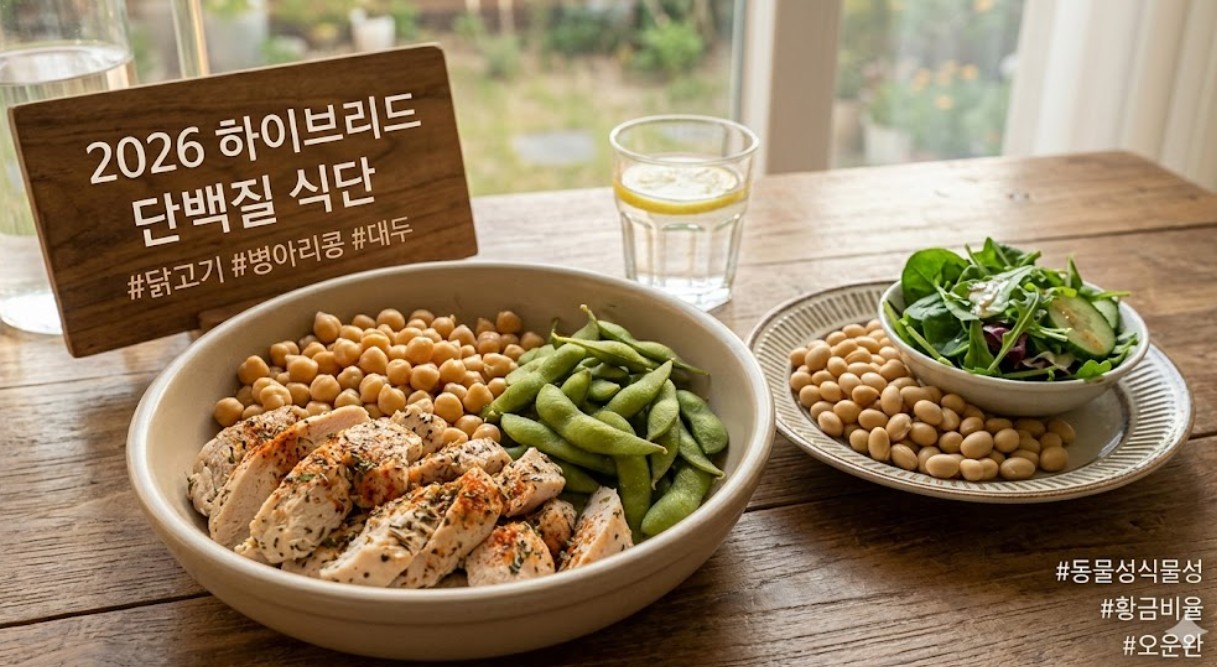 2026년의 건강 트렌드를 선도하는 여러분, 오늘도 활기찬 하루 보내고 계신가요? 최근 건강 관리의 핵심 키워드는 단순히 '단백질을 많이 먹는 것'을 넘어 '어떤 단백질을 어떻게 조합해서 먹느냐'로 진화했어요.특히 동물성 단백질인 닭고기와 식물성 단백질의 대표 주자인 병아리콩, 대두를 함께 섭취하는 '하이브리드 단백질 식단'이 큰 주목을 받고 있답니다. 오늘은 왜 이 세 가지 조합이 우리 몸에 최고의 선물인지, 그리고 어떻게 맛있게 즐길 수 있는지 상세한 가이드로 알려드릴게요!1. 왜 동물성과 식물성을 섞어 먹어야 할까요?우리 몸은 근육을 만들고 면역력을 유지하기 위해 다양한 아미노산이 필요해요. 동물성 단백질은 필수 아미노산이 풍부하지만 지방과 콜레스테롤이 함께 섭취될 우려가 있죠. 반면 식물성 단백질..
