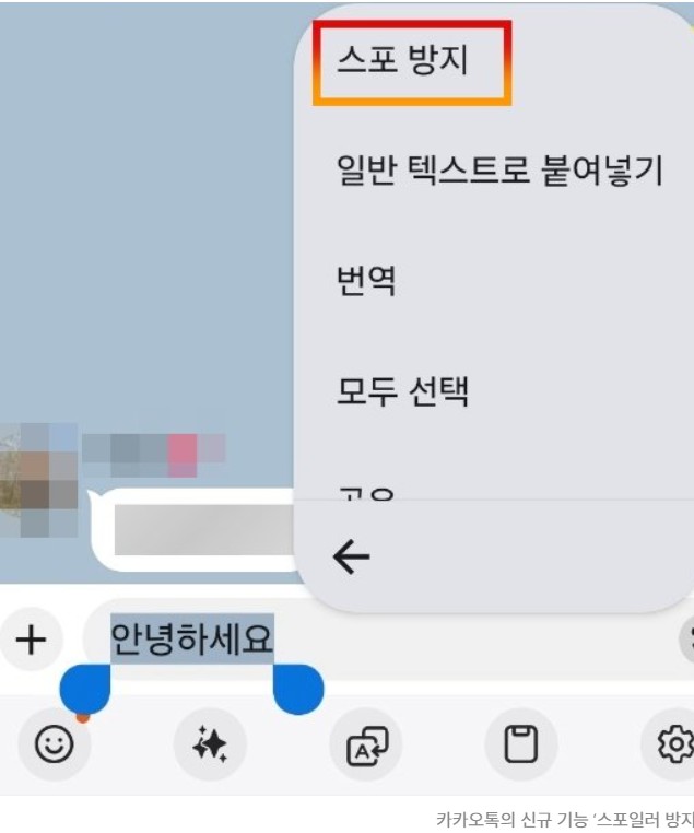 혹시 드라마나 영화 보다가 친구한테 신나게 이야기하고 싶은데, 아직 안 본 친구 있을까 봐 입이 근질근질했던 적 많으시죠? 이제 그럴 필요 없어요! 우리의 영원한 소통 친구, 카카오톡이 아주 기가 막힌 기능을 새로 탑재했거든요! 바로 두구두구두구 ‘스포 방지’ 모자이크 기능이랍니다!