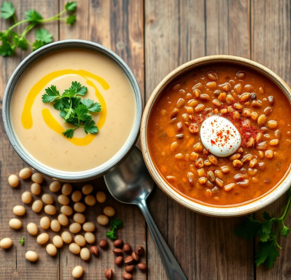 건강에도 좋고 맛도 훌륭한 두 가지 콩 스프, 바로 루핀콩 스프와 렌틸콩 스프를 비교 분석해보려고 해요. 둘 다 뛰어난 영양가를 자랑하지만, 맛, 식감, 그리고 스프에서의 매력은 조금씩 다르답니다. 어떤 스프가 여러분의 입맛과 건강에 더 잘 맞을지, 함께 자세히 알아볼까요? 1. 영양 비교: 몸에 좋은 따뜻함, 무엇을 선택할까?루핀콩과 렌틸콩은 모두 영양가가 풍부한 식재료로, 스프를 끓였을 때 더욱 깊은 풍미와 건강상의 이점을 제공해 줘요. 루핀콩 스프: 루핀콩은 단백질 함량이 매우 높고 식이섬유도 풍부해서 스프를 끓이면 든든한 포만감을 느낄 수 있다는 장점이 있어요. 또한, 칼륨 함량도 높아 혈압 관리에도 도움을 줄 수 있다고 알려져 있답니다. 글루텐 프리라 소화에도 부담이 적고, 건강을 생각하는 분들..